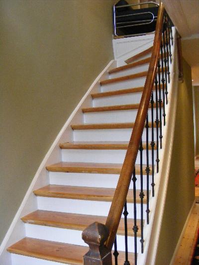Die Treppenwangen und Stoßblenden der Treppe wurden vom Maler neu lackiert.