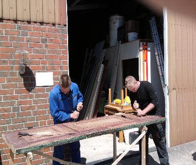 Restaurierung einer alten Zweiflügel-Haustür aus dem Jahre 1897.