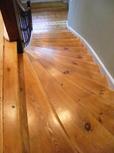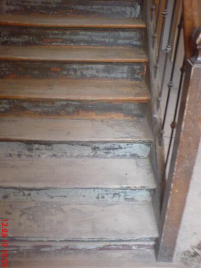 Die Treppenwangen und Stoßblenden der Treppe wurden vom Maler neu lackiert.